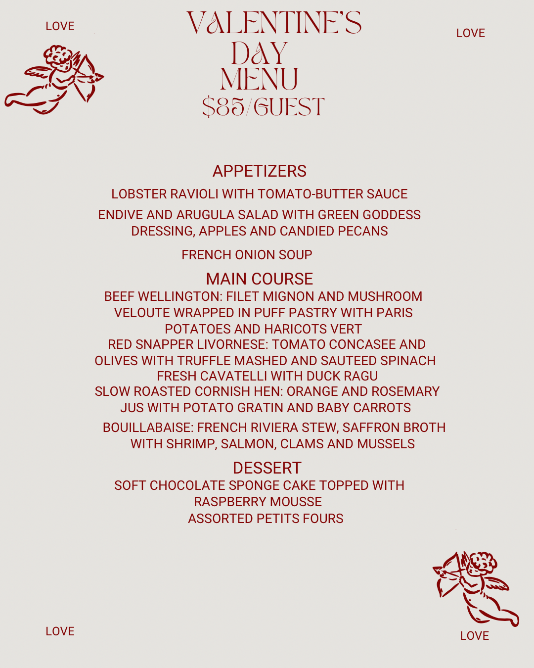 - Valentine's Day Menu